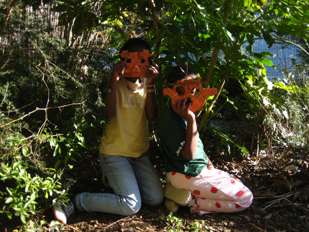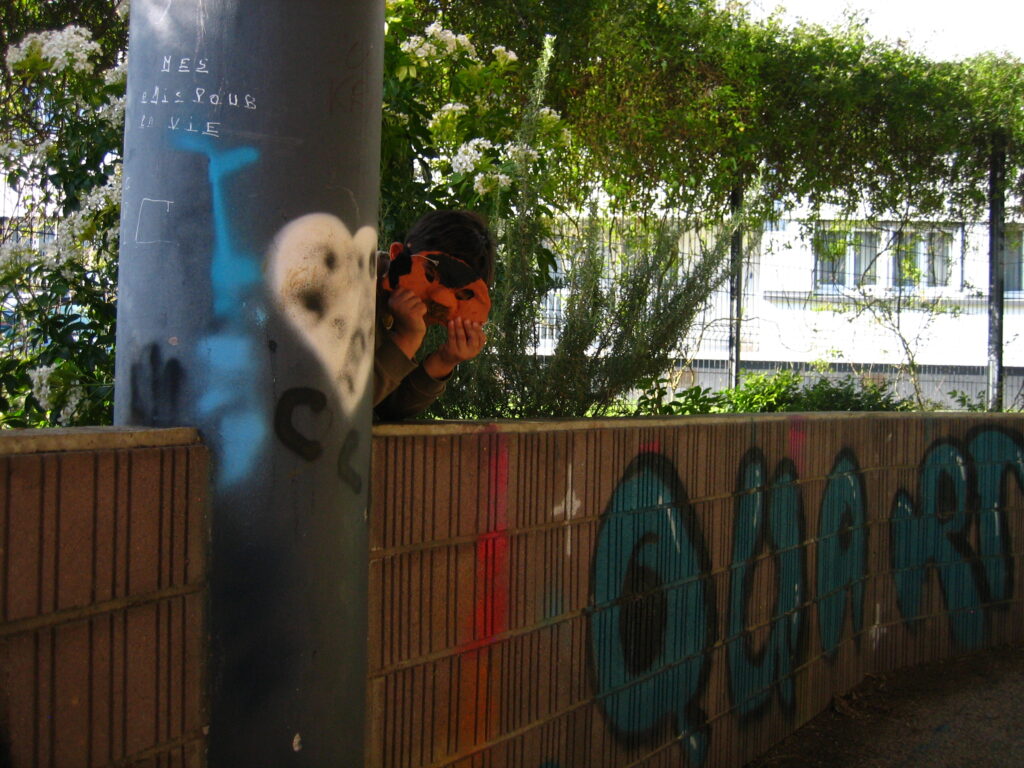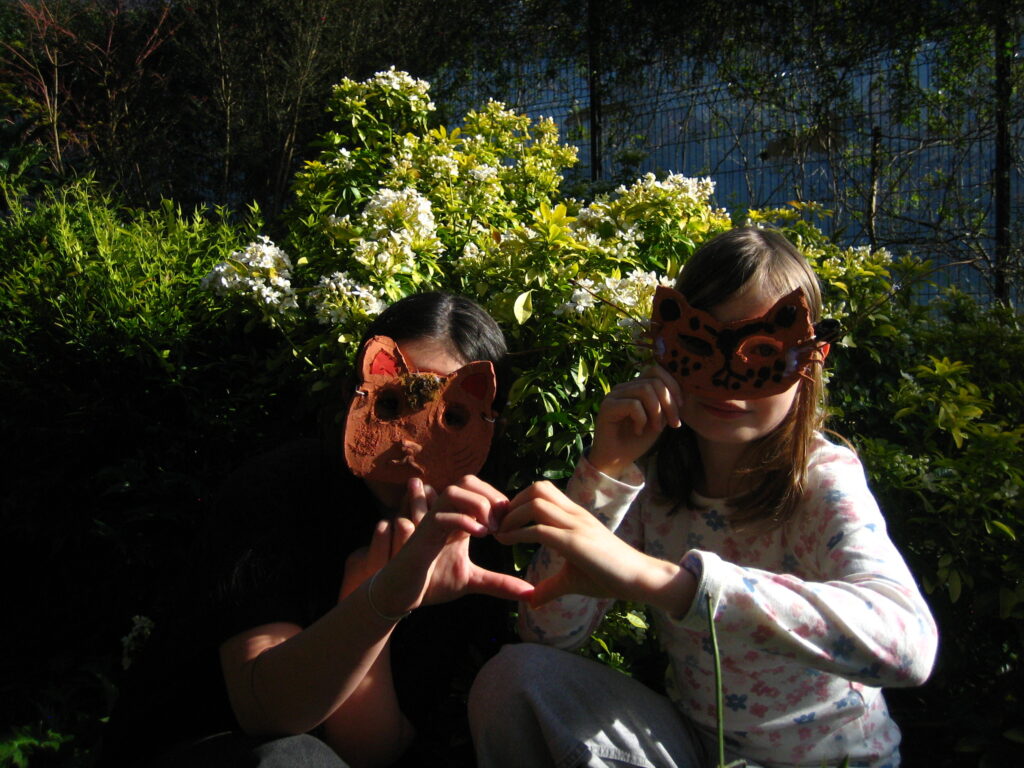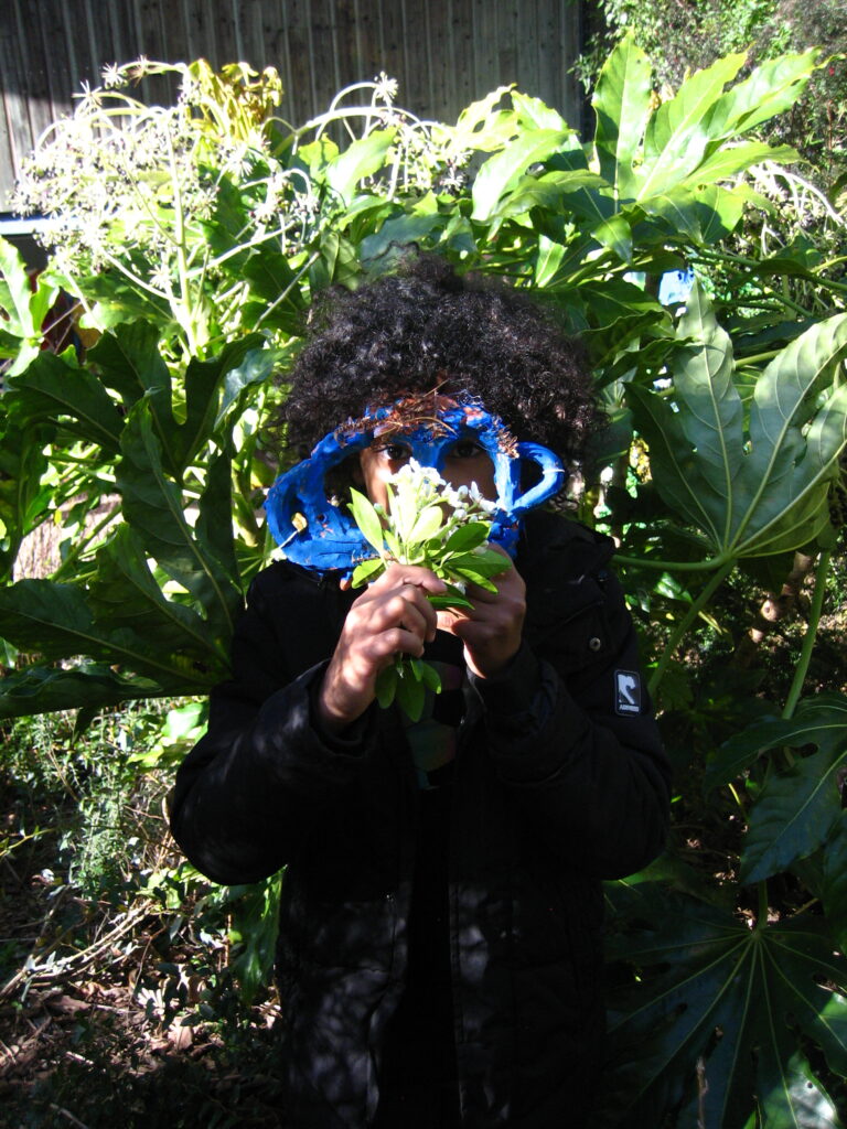 Armone Le Gall a quant à elle partagé son travail artistique avec les enfants. Au programme, création de sculptures animalières et de masques en céramiques, décoration à la peinture et bricolage en tout genre !!! Les enfants sont ensuite allés explorer les espaces de nature alentours pour se mettre en scène avec leurs créations dans la végétation. Ils ont ainsi créé des micro-paysages qu’ils ont pris en photo et ont posés avec leurs masques. Ils ont appris à être attentif au cadrage de leurs photographies. Nous avons clôturé le travail par la préparation d’une petite exposition et d’un « vernissage ». L’objectif était de faire découvrir tout le processus de travail d’un artiste de la création à l’exposition. Ils ont donc préparé leurs présentation, affiché les photographies et accueillit leurs parents lors d’un goûté.