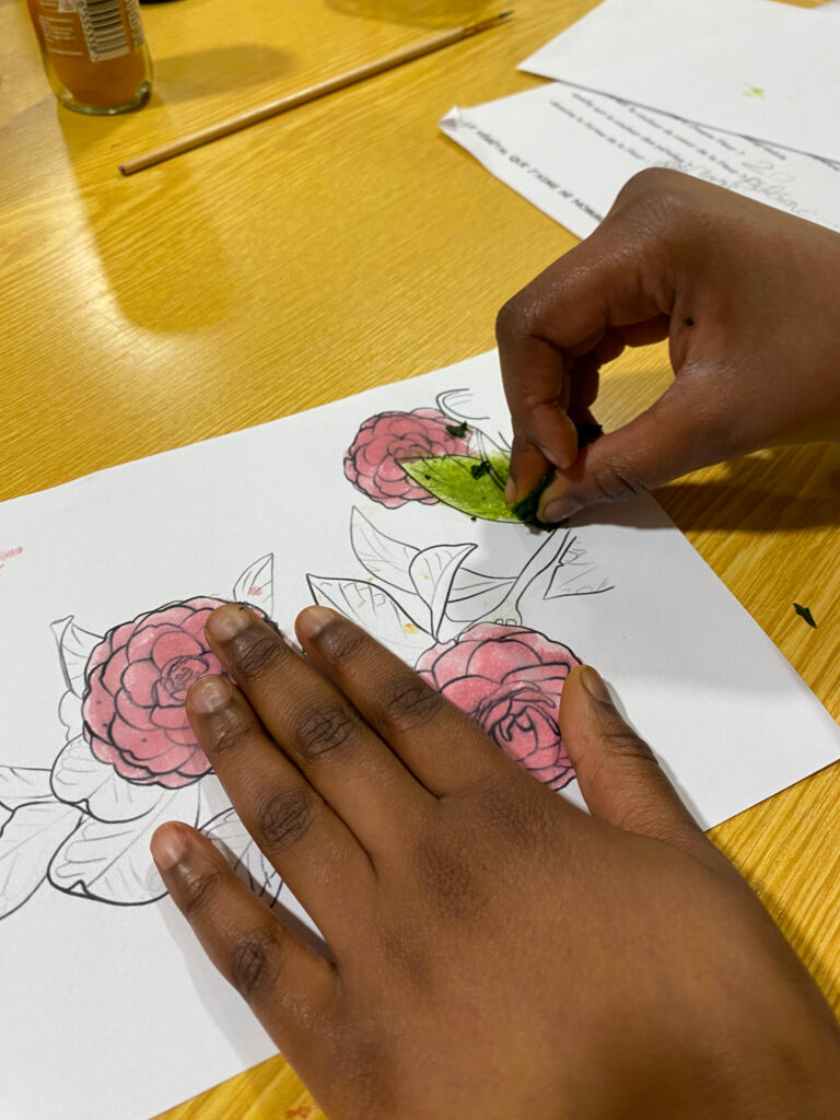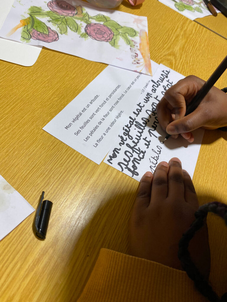 Lors de la dernière séance, les parents ont joyeusement participé à l’élaboration finale du panneau de jeu ! Leurs enfants étaient fiers de leur enseigner les noms des fleurs et de partager leur regard sensible sur la beauté et le rôle de celles-ci.