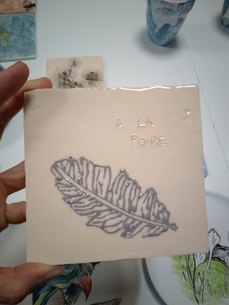 De multiples techniques de céramique sont au programme dans ce cours : décors sgraffito, mocha tea, mishima, engobe, email, etc.